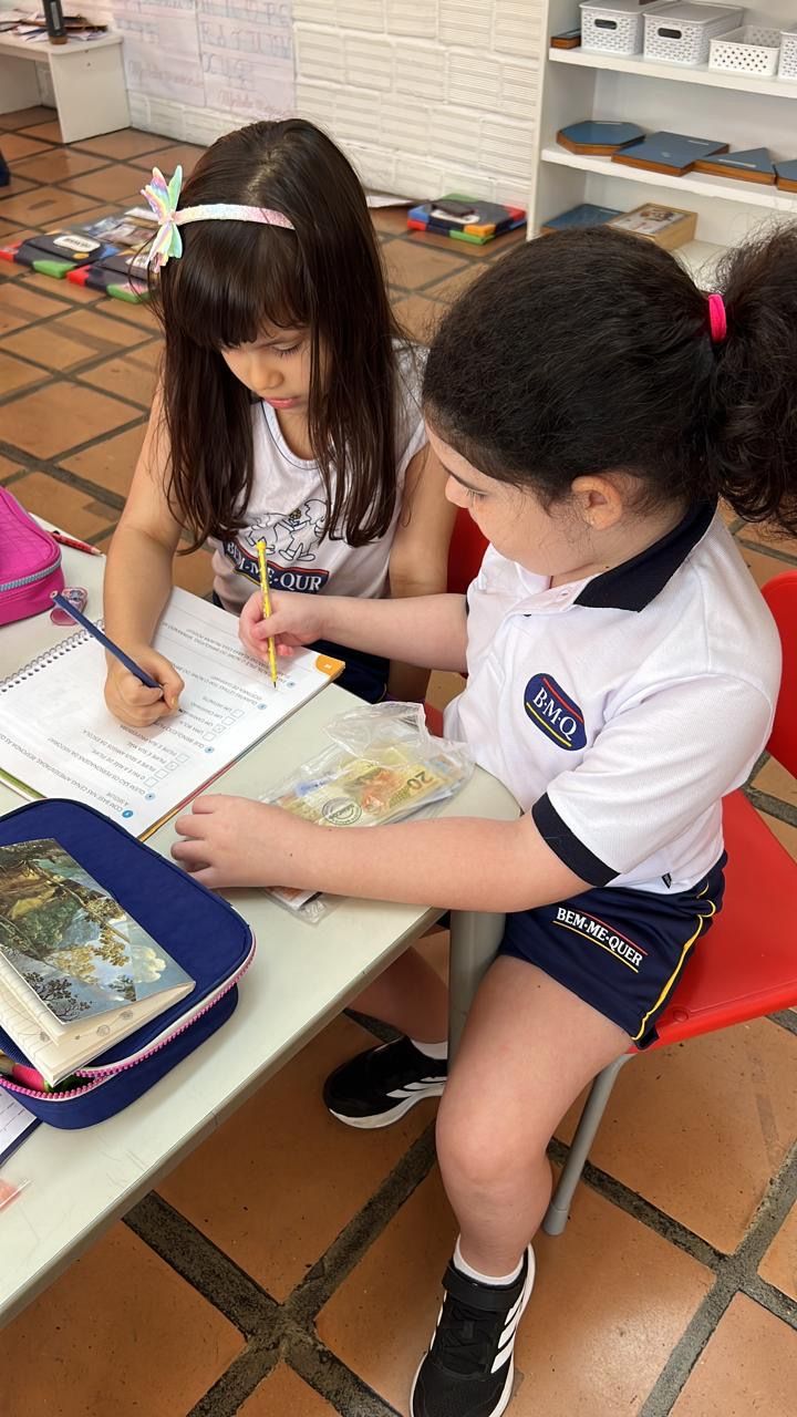 A matemática financeira é uma área essencial para a formação dos estudantes, pois desenvolve habilidades práticas que estarão presentes em seu dia a dia. Na Escola Bem-Me-Quer, trabalhamos esse conteúdo de forma dinâmica e prática, utilizando o livro Banco Mais como principal recurso.